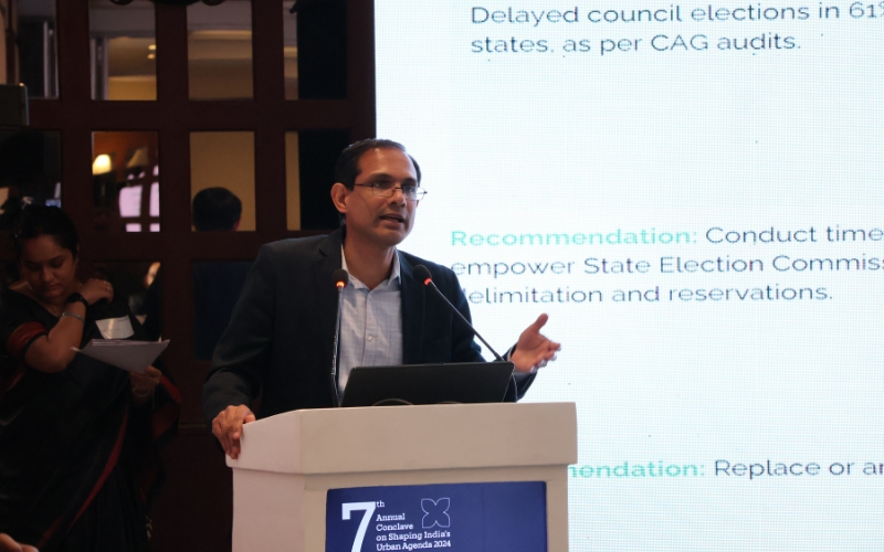 The speakers stressed that realising the vision of the 74th Constitutional Amendment requires empowering State Election Commissions. These bodies, they argued, should have autonomy and authority equal to the Election Commission of India to conduct local body elections independently. There was consensus that, despite the legal provisions for decentralisation, there is limited devolution of powers, which leads to the disempowerment of Urban Local Governments (ULGs) and a reluctance to create meaningful opportunities for citizen participation. Examples like the Slum Dwellers Associations in Odisha and Area Level Federations of Self-Help Groups (SHGs) in Guwahati demonstrate that involving communities in development initiatives leads to empowerment and improved governance outcomes. It was also highlighted that ULGs must see the consumers of the services as communities, and not just as users, and should therefore ensure equity and justice through community participation. The speakers called for actionable measures to institutionalise participatory governance as a cornerstone for sustainable development at the local level.
