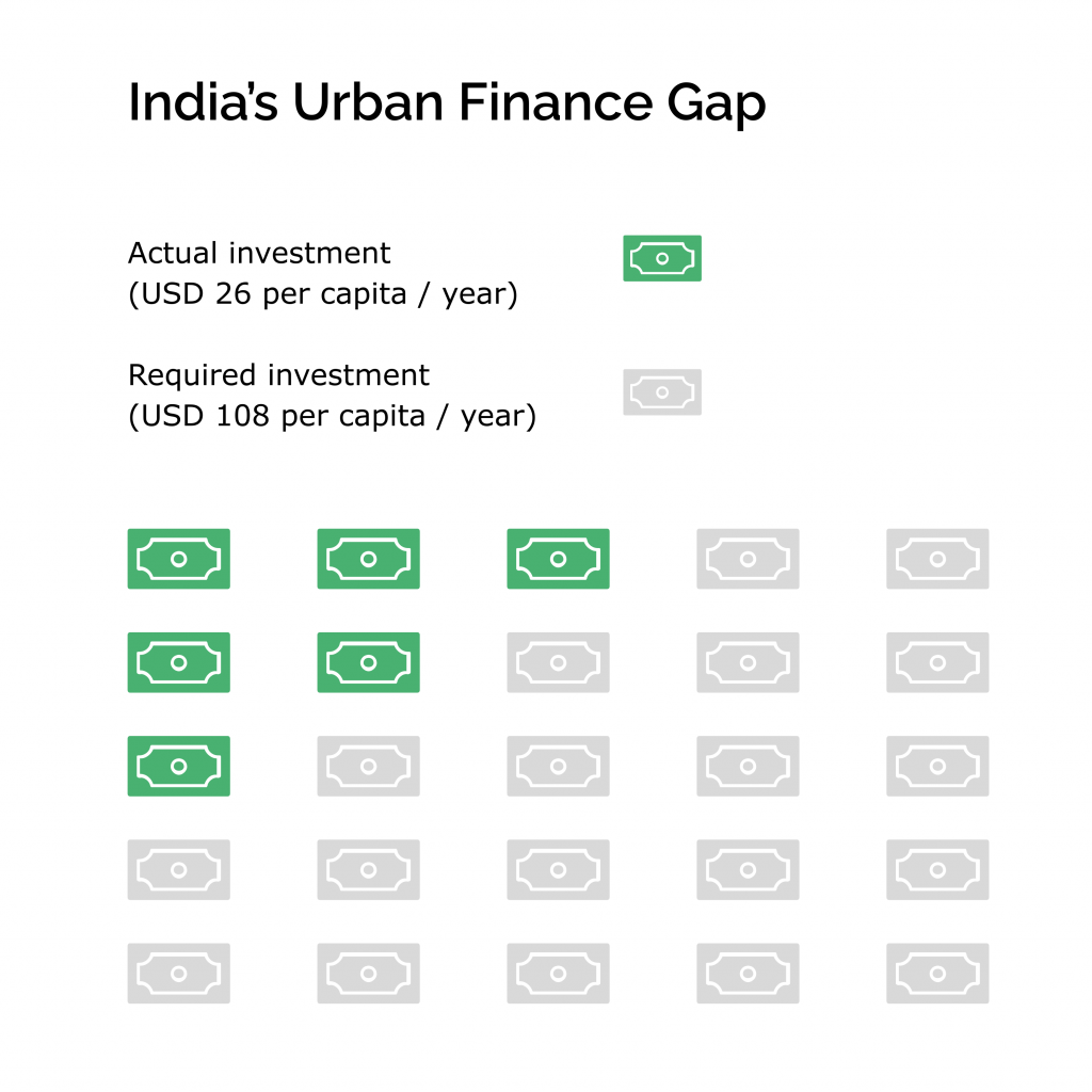 According to the World Bank (2022), Indian cities require USD 840 billion in capital investment over the 15-year period leading up to 2036, equivalent to USD 108 per capita per year.