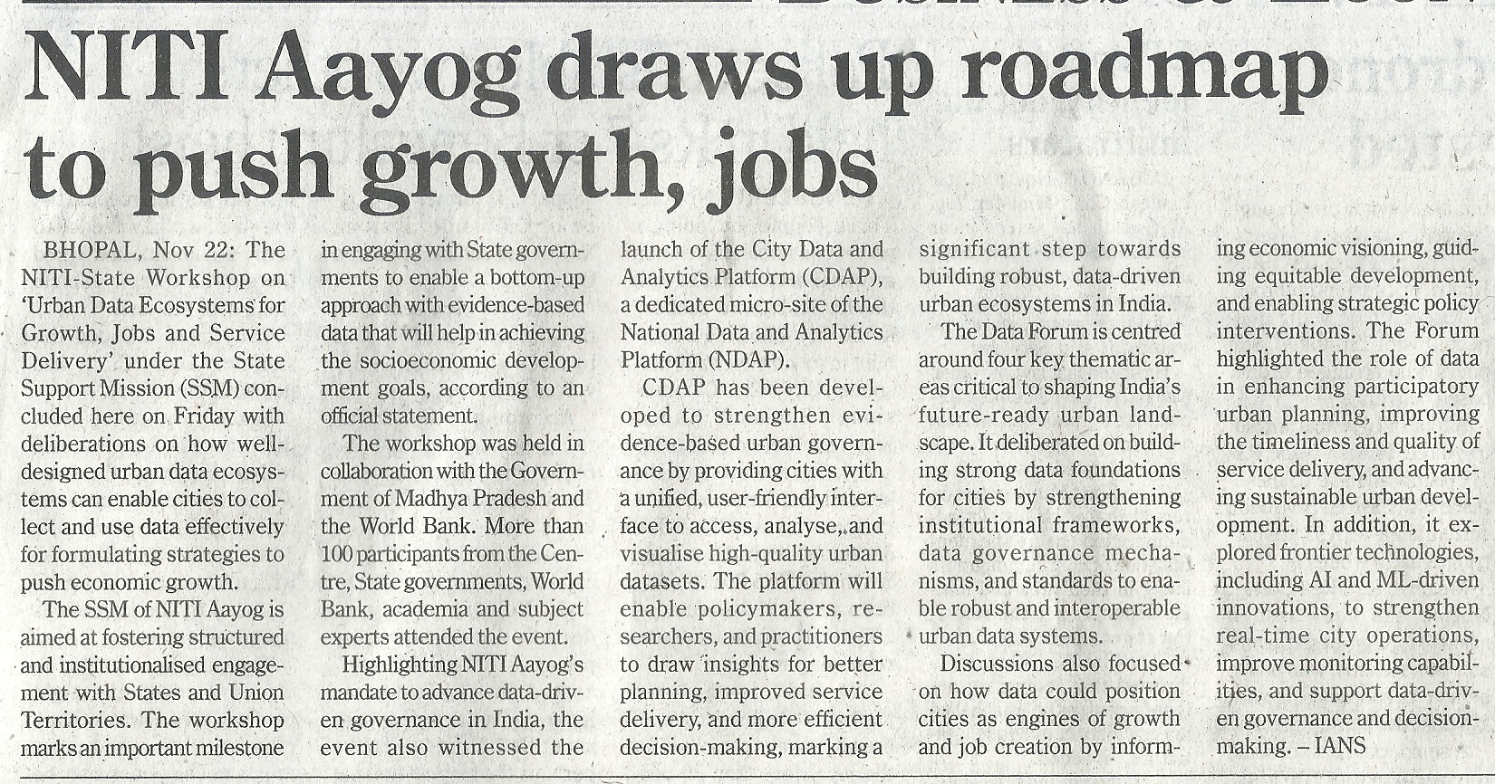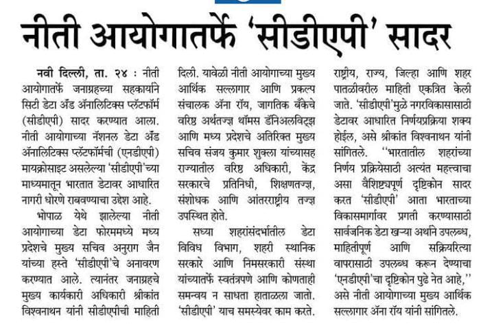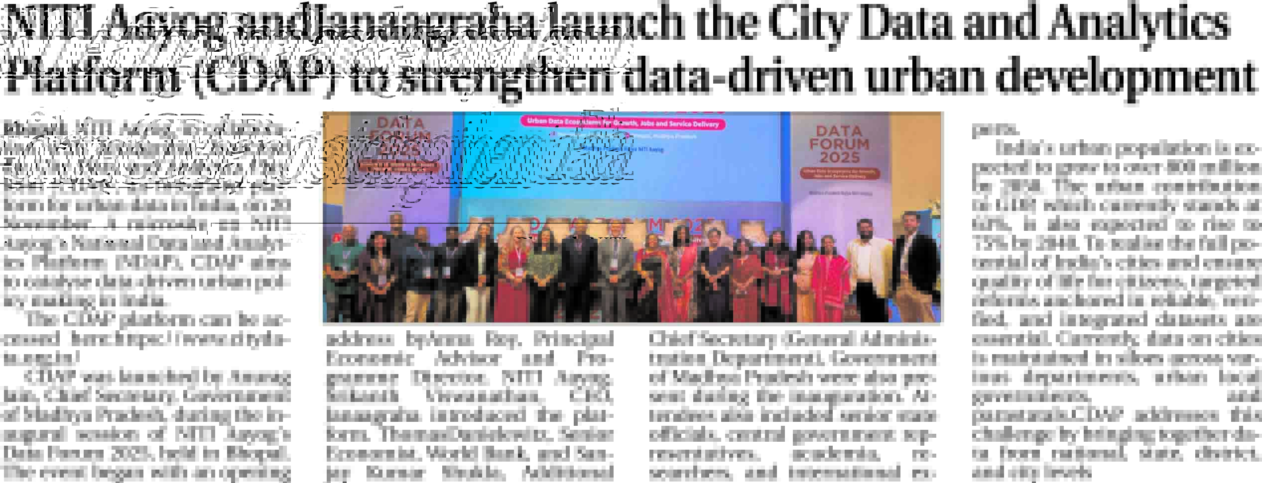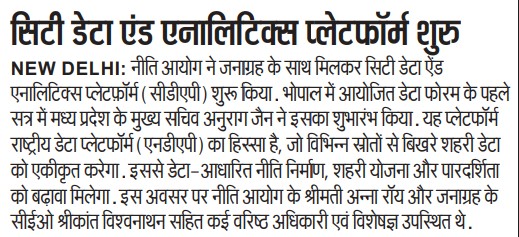 નીતિ આયોગ-જનઅરણીયે ડેટા-સંચાલિત શહેરો વિકાસ માટે પ્લેટફોર્મ CDAP રજુ કર્યું