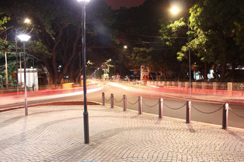 The St Mark’s road has footpaths that are in average 4 to 5 metres wide, 10 parking bays, one bus bay, 56 LED street lights and a cycle lane. The Vittal Mallya Road has footpath with an average width of 3.5 to 5 metres, 7 parking bays, one bus bay, 17 LED street lights and a cycle lane.