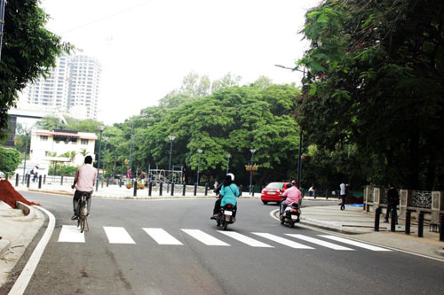 The St Mark’s Road which is 0.9 km long was developed at a cost of Rs 10.78 crores, while the 0.6 km long Vittal Mallya road was developed at the cost of Rs 6.70 crores. The roads are designed to have a uniform vehicular travel lane that allows for continuous traffic movement with designated street parking. The design ensured ample footpath along the entire stretch of the road.